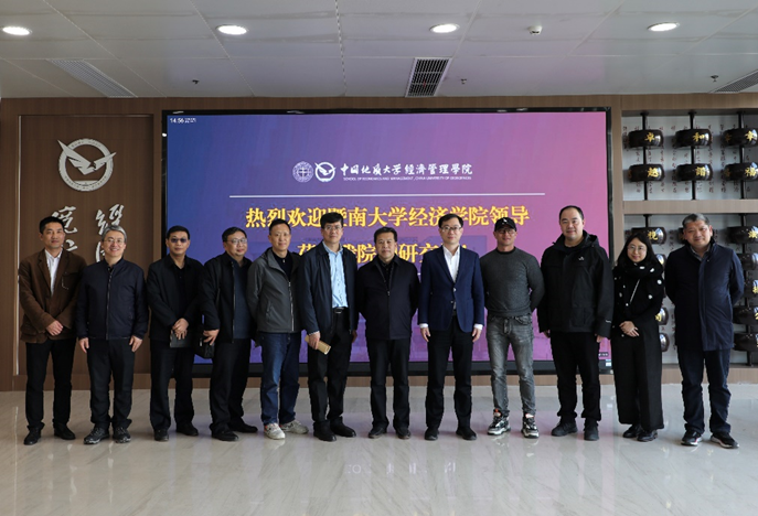 (通讯员 胡启婧)3月26日下午,暨南大学经济学院院长王春超,党委书记成品兴,党委副书记苏柯,副院长杨广仁、何凌云,办公室主任徐思捷一行莅临我院进行调研交流。我院党委书记杨昌锐,党委副书记李纪亮,副院长肖建忠、王广民,党建、人事、科研等相关工作负责人及教职工代表参加了座谈。会议由党委书记杨昌锐主持。