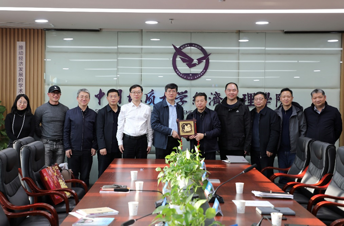 会后,暨南大学经济学院党委书记成品兴向我院赠送纪念品并合影留恋。(审核 杨昌锐)