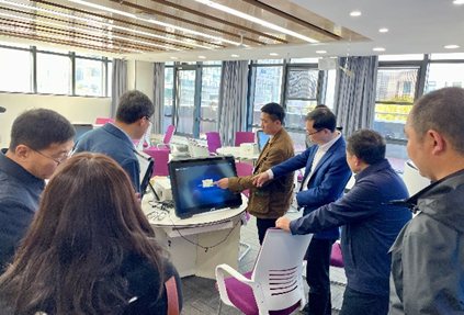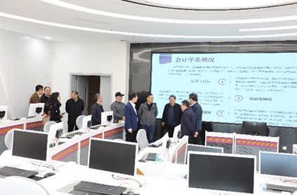 党委书记杨昌锐等院领导带领王春超院长一行参观了我院金融实验室、云共享财务实验室、智慧教室、数字化档案室和活动室,双方围绕大数据、云计算、VR等新技术在党建、教学中的融合进行了交流探讨。