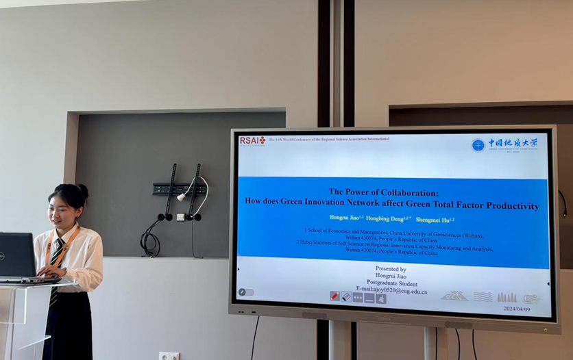 2024年4月8日-11日,国际区域科学协会第十四届世界大会在匈牙利召开,我院应用经济学博士生焦弘睿参会,并代表所在的邓宏兵教授团队在分会场宣读论文《The Power of Collaboration: How does Green Innovation Network affect Green Total Factor Productivity》。