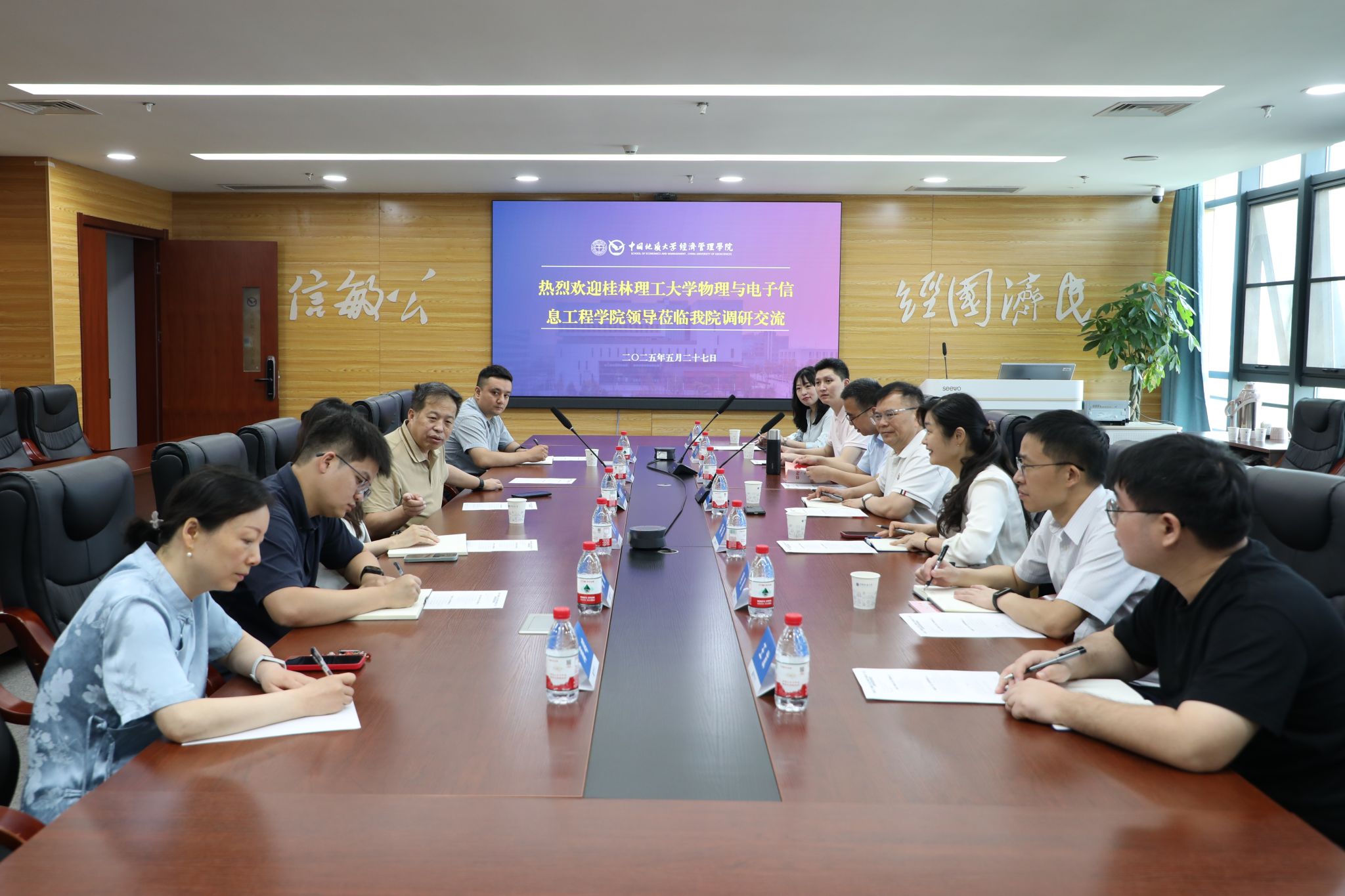 (通讯员:海鸣 摄影:胡启婧)2025年5月27日上午,桂林理工大学物理与电子信息工程学院党委书记秦勤忠、党委副书记蒋琼、支部书记夏雄平、明星、学工组组长黄嘉、组织员夏琳、团委副书记王发一行7人莅临我院开展党建调研交流。我院党委书记杨昌锐、旅游管理系党支部书记李江敏、工商管理系党支部书记张京、团委书记努尔夏提·居勒提及负责学生、教师党建相关工作的老师共同参与了此次座谈会。会议由杨昌锐书记主持。