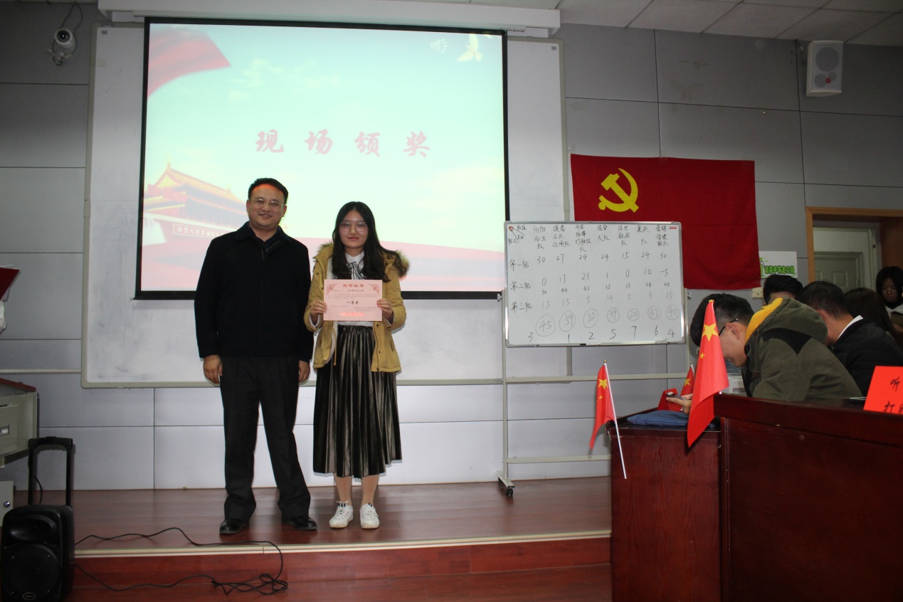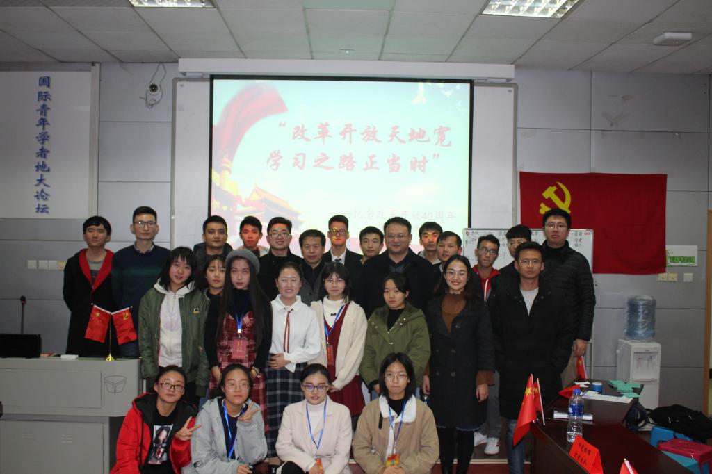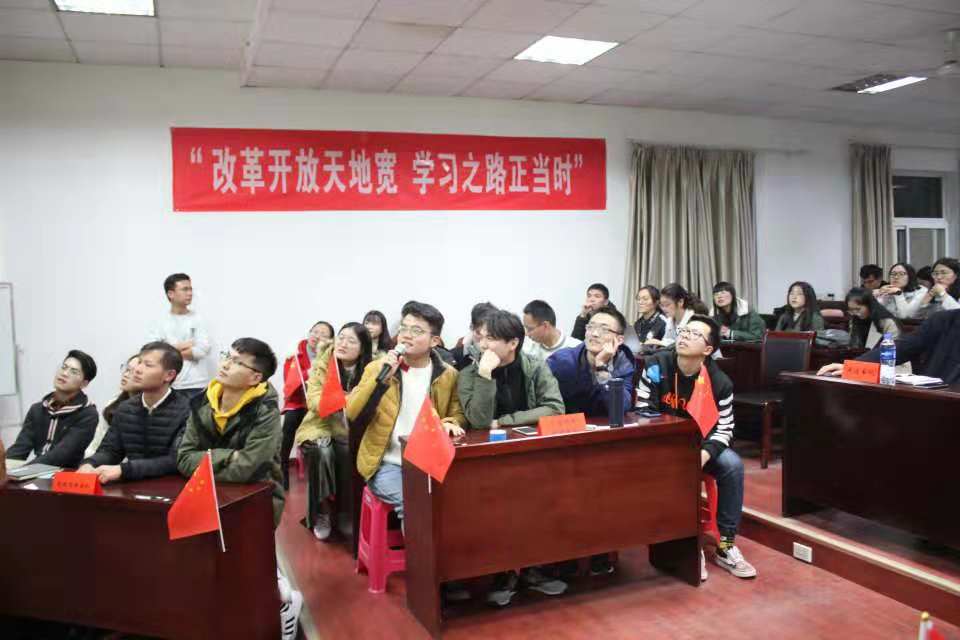 (学院党建办公室:王洁彬)2018年11月22日晚7:00,由经济管理学院党委主办、学院党建办公室承办的“改革开放天地宽,学习之路正当时”——纪念改革开放40周年主题知识竞赛活动在MBA楼208室如期举行。出席本次活动的嘉宾有:学院党委书记杨昌锐老师、学校党委组织部马洪福老师、学院党委副书记沈波老师、学院管理科学与工程系教职工党支部书记孙涵老师、学工组全体老师;全体学生党员到场观看学习。