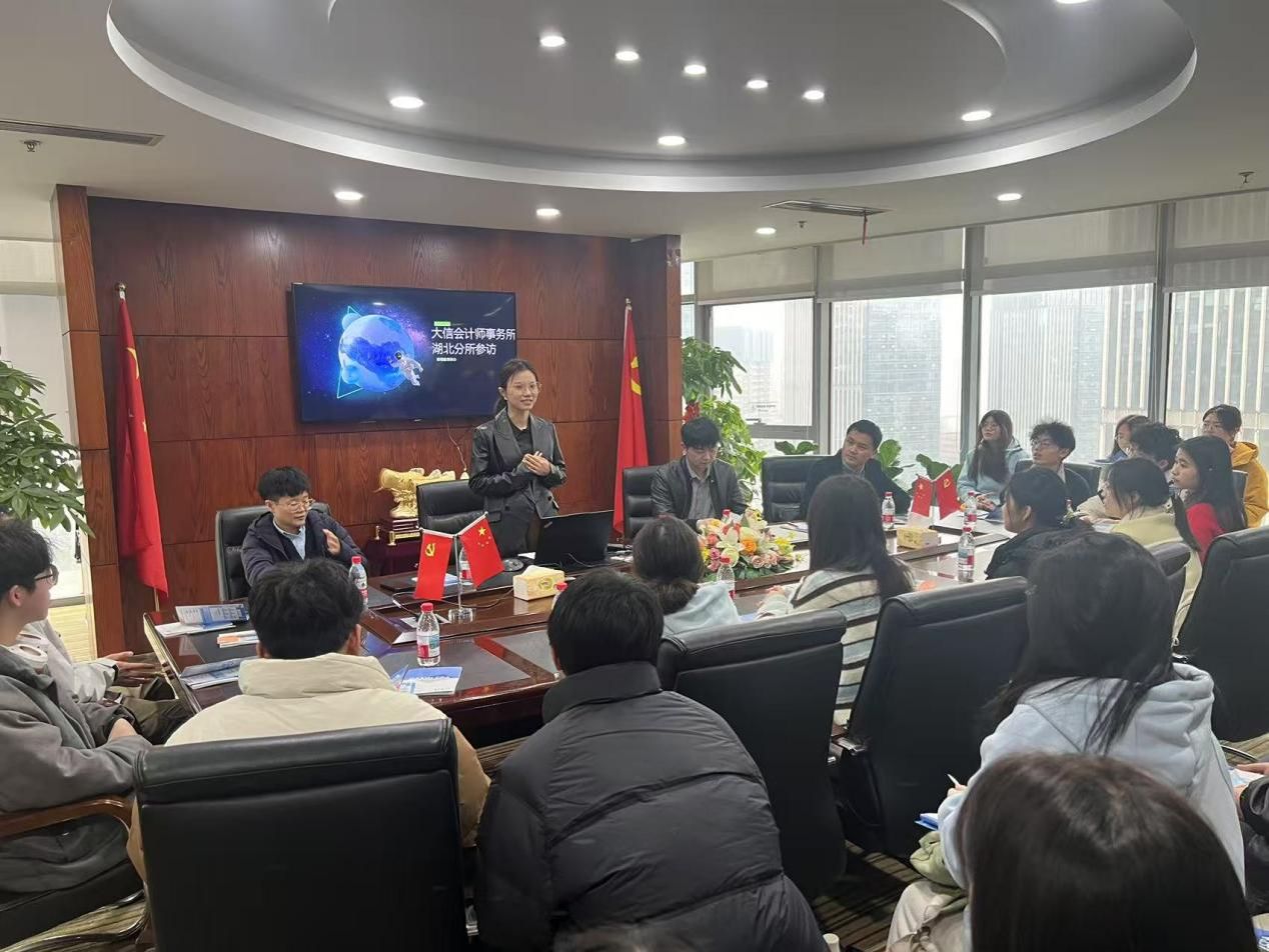 近日,为进一步深化校企合作,切实提升学生职业实践能力,经济管理学院 30 余名2024级学生代表,在院企合作单位高顿教育的精心组织下,走进大信会计师事务所(特殊普通合伙)湖北分所,开展了一场意义非凡的参访活动。大信会计师事务所湖北分所授薪合伙人王畅、高级项目经理李嘉伟、人事招聘经理罗青,以及经济管理学院就业专员兼 2024 级辅导员张弛共同出席此次活动。