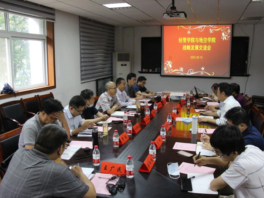 为推动党史学习教育取得扎实成效,集思广益为师生员工办实事、解难事,通过面对面交流研讨、互学互鉴,助力新时代新阶段学院高质量建设和内涵式发展,开启“十四五”新征程,5月13日下午,在南望山校区西区物探楼214会议室,校党委常委、副校长刘勇胜教授召集地空学院与经管学院领导班子举行战略发展交流会。